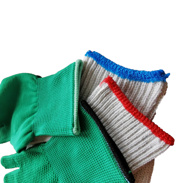手套一次成型,羅口不散邊,適用于各種勞保手套,能一定程度替代掉鎖邊工序。采用不用規格的橡筋線、熱熔絲、氨綸包覆紗,在羅口的松緊度和外觀上有不同的表現。